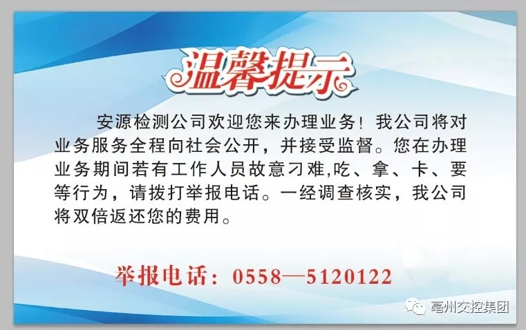 專屬名片正面以安源檢測公司的窗口形象為背景,印有服務(wù)項(xiàng)目、宗旨理念、咨詢電話、公司地址等;背面印有安源檢測公司給予車主的溫馨提示以及舉報(bào)電話,具有攜帶方便、內(nèi)容具體、形式新穎的特點(diǎn)。