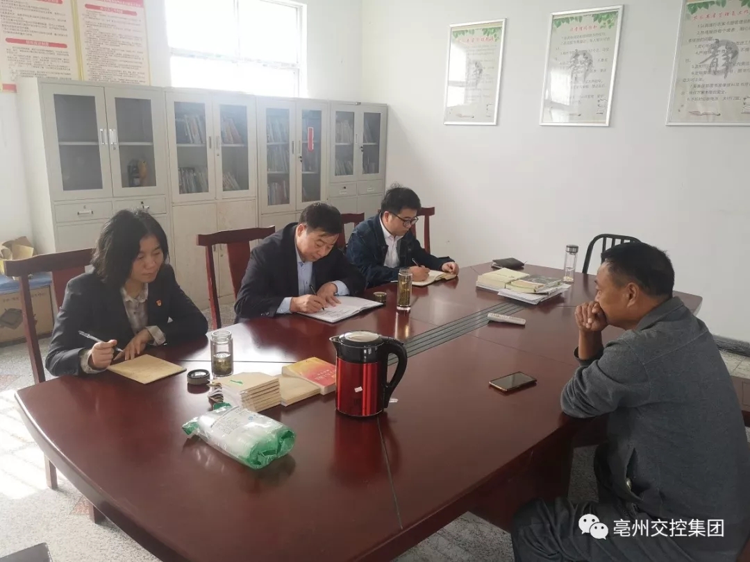 11月4日,交控集團(tuán)黨委書記、董事長(zhǎng)王鍇深入利辛縣新張集鄉(xiāng)陽(yáng)光村開(kāi)展調(diào)研走訪,征集貧困戶微心愿,共商精準(zhǔn)脫貧下步工作。集團(tuán)組織人事部負(fù)責(zé)人王平、村兩委班子成員等參加扶貧調(diào)研。