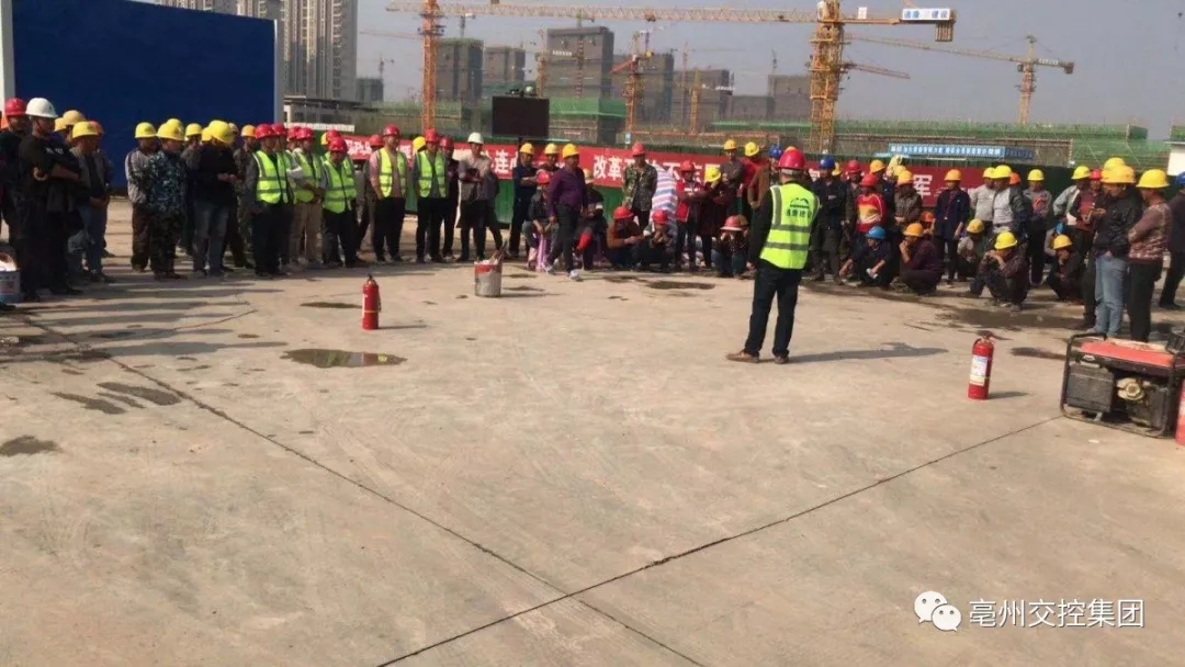 此次活動由通康公司項目部主辦,現(xiàn)場管理人員和施工人員60余人參加。結合項目部及各施工隊伍的實際情況,活動分為兩個階段:一是演練前的消防安全知識培訓,二是現(xiàn)場實際演練。在培訓的安全宣講階段,安全負責人傳達消防安全對于工程項目建設的重要性,并強調了在施工現(xiàn)場消防安全諸多注意事項,介紹消防器材的正確使用及管理措施、應對突發(fā)火災的方法等。在現(xiàn)場演練階段,施工現(xiàn)場模擬“著火了”,現(xiàn)場人員組成應急救援小組,迅速抵達現(xiàn)場投入搶險,有序開展現(xiàn)場警戒、安全疏散、快速滅火。