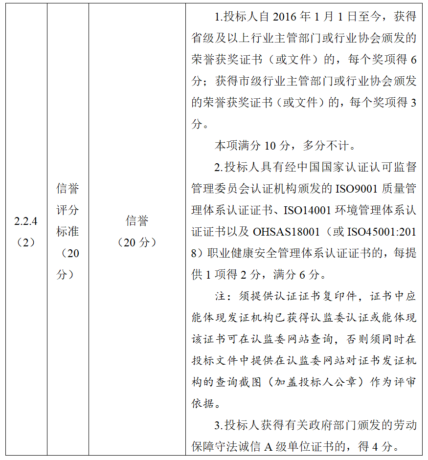 經(jīng)研究,安徽省安車交通運輸集團有限公司物業(yè)(項目編號:BZJK-2021-058號)招標文件第三章評標辦法(綜合評估法)評標辦法前附表“2.2.4(2) 信譽評分標準”修改如下: