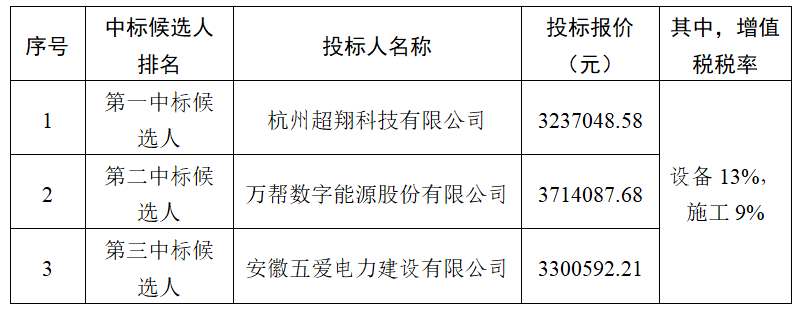 根據(jù)有關(guān)規(guī)定,招標(biāo)人確定杭州超翔科技有限公司為中標(biāo)人,中標(biāo)價為人民幣(大寫)叁佰貳拾叁萬柒仟零肆拾捌元伍角捌分,(小寫)3237048.58元(其中,增值稅稅率為設(shè)備13%、施工9%),工期30日歷天,以“交鑰匙”方式,按照審核確認(rèn)的設(shè)計圖紙、工程量清單及招標(biāo)人要求,完成亳州市城區(qū)建設(shè)充電樁場站項目工程材料及設(shè)備采購、施工、安裝、調(diào)試、竣工驗收、正式送電、缺陷責(zé)任期內(nèi)工程質(zhì)量保修等全部工作,工程質(zhì)量符合國家、地方、行業(yè)現(xiàn)行相關(guān)規(guī)范合格標(biāo)準(zhǔn),符合設(shè)計圖紙、圖集規(guī)定標(biāo)準(zhǔn),通過招標(biāo)人、供電主管部門驗收,滿足招標(biāo)文件第五章技術(shù)標(biāo)準(zhǔn)和要求。