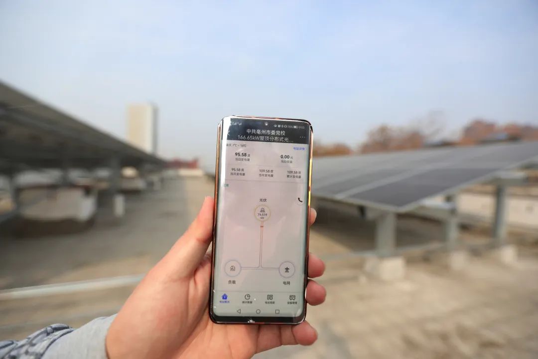 項目位于亳州市委黨校,利用閑置屋頂資源1300㎡,總裝機容量166.65kW,采用“自發(fā)自用、余電上網(wǎng)”模式,年平均發(fā)電量可達19萬kW·h,運營期25年預(yù)計總發(fā)電量約475萬kW·h,可節(jié)約標準煤約1356噸,減少二氧化碳排放約3728噸。