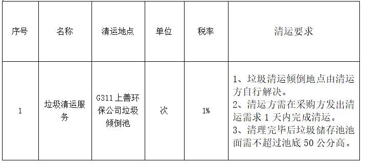 (三)交貨期:清運方需在采購方發(fā)出清運需求1天內(nèi)完成清運。
