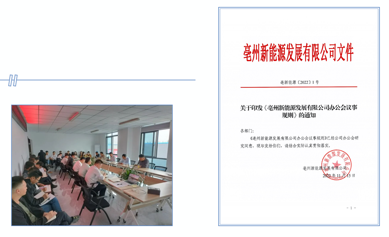 各子公司(事業(yè)部)共新增、完善各類規(guī)章制度60余項(xiàng),其中新能源公司相繼印發(fā)了《公司辦公會議事規(guī)則》《公司采購管理辦法》《公司安全生產(chǎn)管理制度(試行)》等7項(xiàng)規(guī)章制度,公司經(jīng)營管理制度體系初步建立;通康公司、通達(dá)利公司定期調(diào)度制度完善工作進(jìn)展,組織召開專題研討會,修訂規(guī)章制度30余項(xiàng),公司制度體系不斷完善。