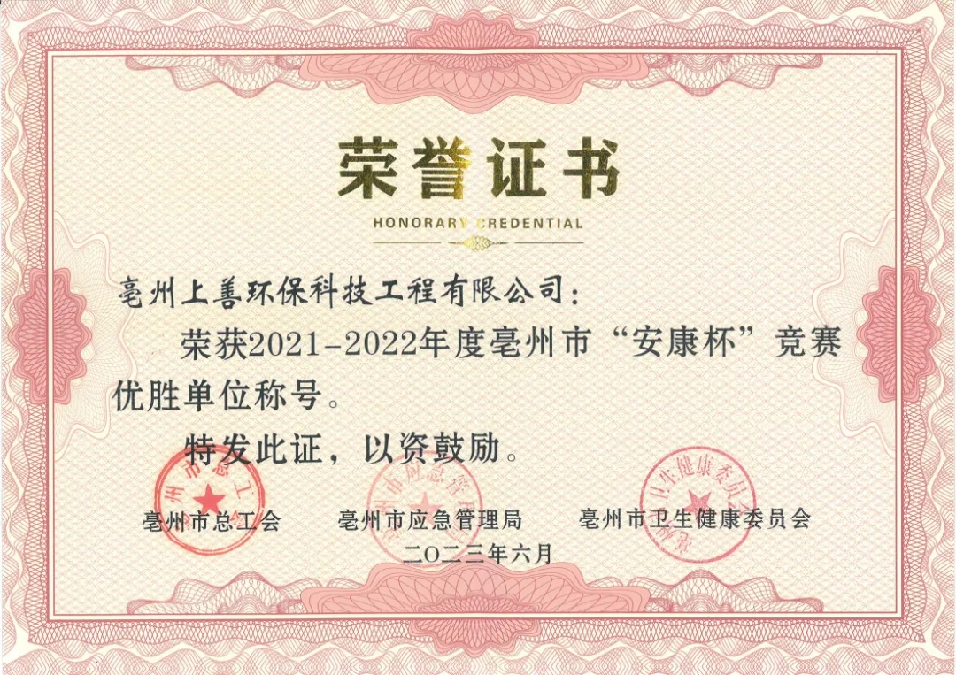 2021-2022年度亳州市“安康杯”競賽優(yōu)勝單位