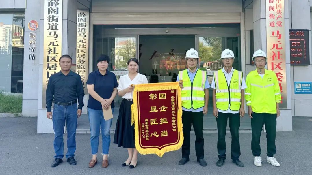 譙城區(qū)薛閣街道辦事處主任韓培、馬元社區(qū)黨委書記郭俠一行,將寫有“彰顯匠心、國企擔(dān)當(dāng)”的錦旗及一封感謝信送到交控集團下屬通康公司人員手上,對交控集團的奉獻(xiàn)精神和愛民之情表示由衷的感謝。