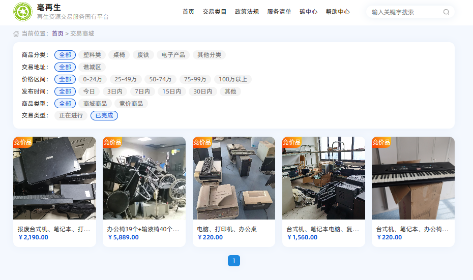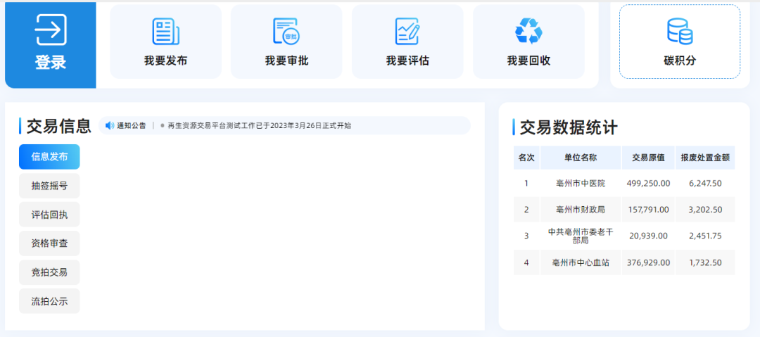作為市級(jí)物資循環(huán)利用交易平臺(tái),目前,“亳再生”交易平臺(tái)主要聚焦我市行政事業(yè)單位、市屬企業(yè)等資產(chǎn)處置需求,整合供求信息,精準(zhǔn)匹配內(nèi)容,協(xié)助完成報(bào)廢資產(chǎn)的回收處理工作,確保國有資產(chǎn)保值增值。