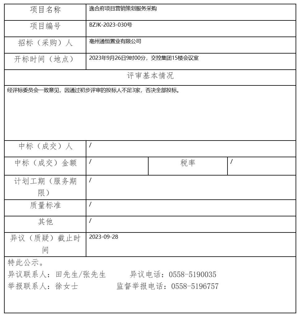 逸合府項目營銷策劃服務(wù)采購中標(biāo)結(jié)果公示