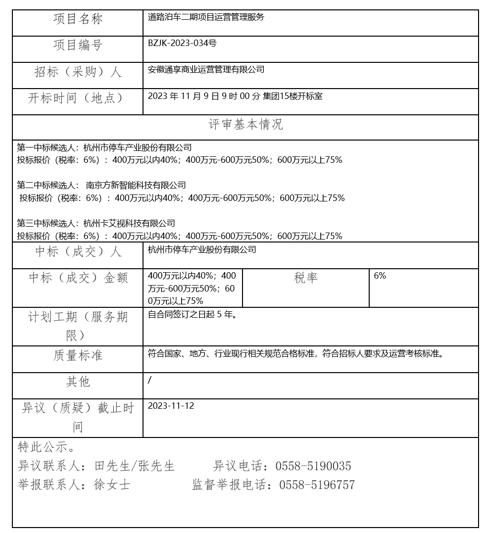 道路泊車二期項(xiàng)目運(yùn)營管理服務(wù)中標(biāo)(成交)結(jié)果公示