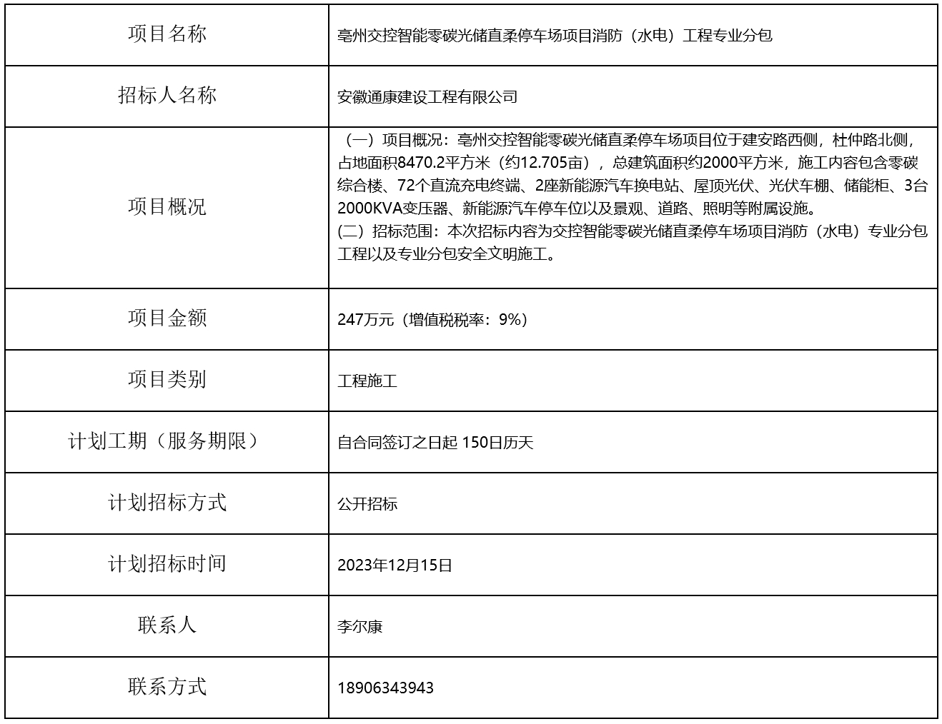 亳州交控智能零碳光儲(chǔ)直柔停車(chē)場(chǎng)項(xiàng)目消防(水電)工程專(zhuān)業(yè)分包招標(biāo)計(jì)劃
