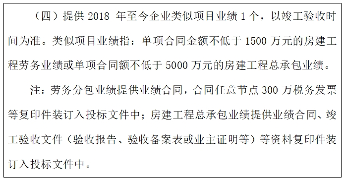 1.關(guān)于招標(biāo)文件第一章招標(biāo)公告“三、投標(biāo)人資格要求:(四)提供2018 年至今企業(yè)類似項(xiàng)目業(yè)績(jī)1個(gè),以竣工驗(yàn)收時(shí)間為準(zhǔn)。類似項(xiàng)目業(yè)績(jī)指:單項(xiàng)合同金額不低于1500萬元的房建工程勞務(wù)業(yè)績(jī)”,房建工程總承包業(yè)績(jī)中包含勞務(wù),且金額滿足 1500萬;是否符合招標(biāo)文件要求?投標(biāo)時(shí)需要提供哪些證明材料及總包合同額要求?