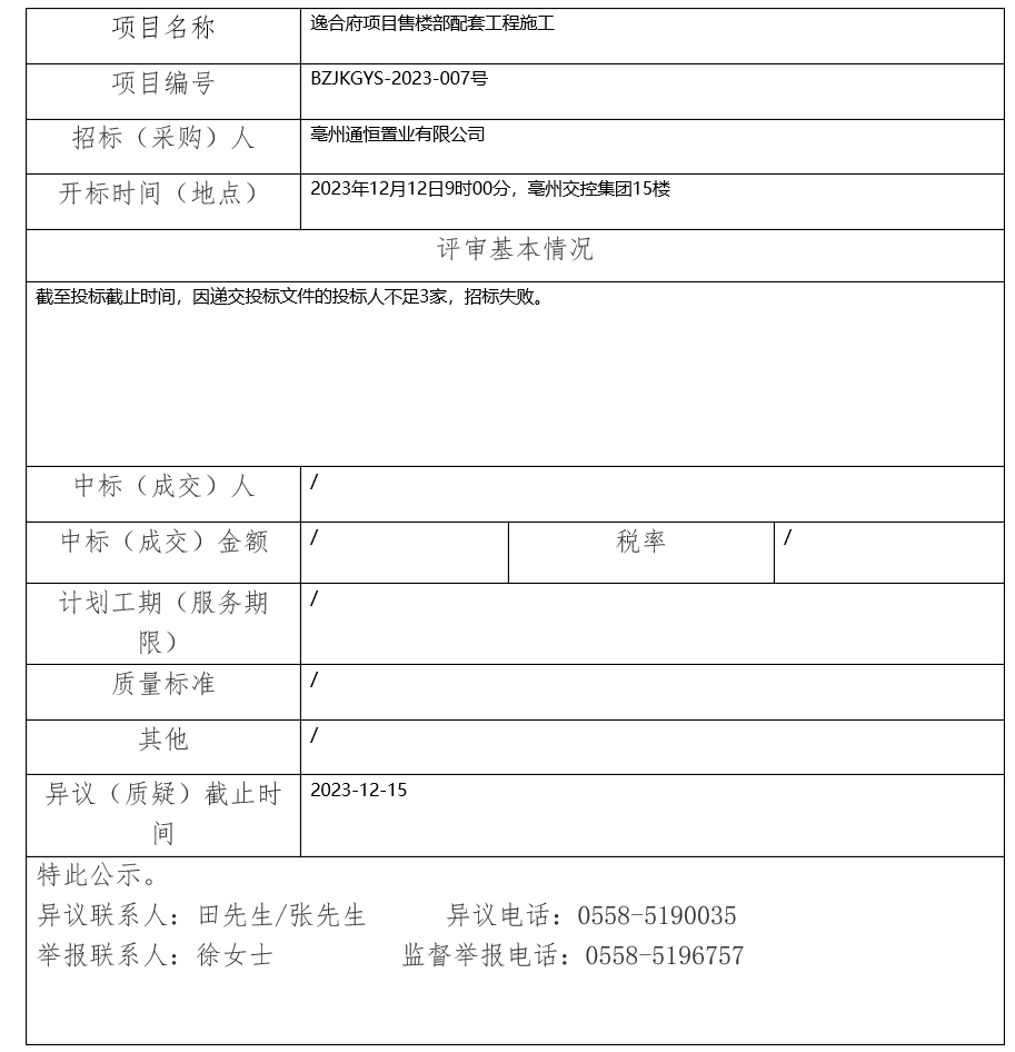 逸合府項(xiàng)目售樓部配套工程施工中標(biāo)(成交)結(jié)果公示