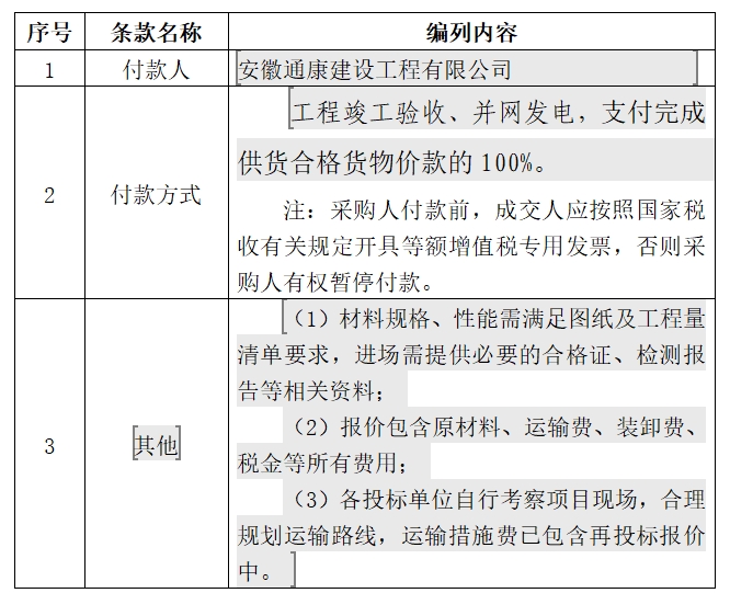 響應(yīng)保證金必須在投標(biāo)截止時間前,由供應(yīng)商在中華人民共和國境內(nèi)注冊經(jīng)營的銀行基本賬戶匯入到指定銀行賬號,確保銀行記錄可查詢,轉(zhuǎn)賬或電匯時須在附言處備注“亳州新能源發(fā)展有限公司亳州中心汽車站菜市場430kW分布式光伏發(fā)電項目建筑材料采購保證金”,否則,責(zé)任自負(fù)。