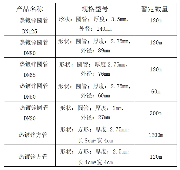 (一)項目名稱:省道309小修保養(yǎng)工程鍍鋅圓管采購項目