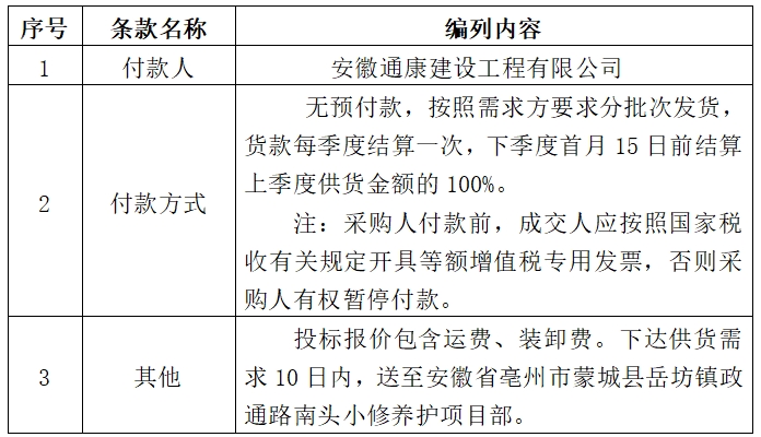 說明:具體合同條款及格式由采購人與成交人在不違背詢價公告和響應文件承諾的條件下友好協(xié)商簽訂。