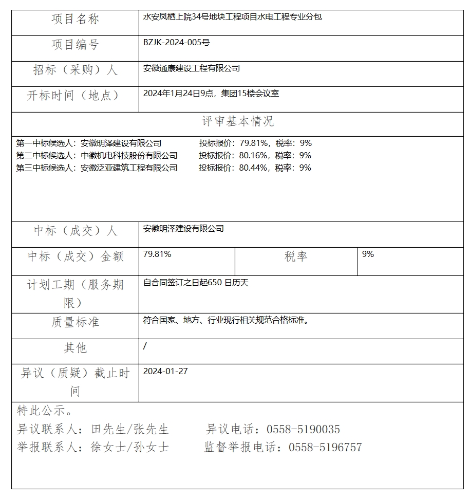 水安鳳棲上院34號(hào)地塊工程項(xiàng)目水電工程專(zhuān)業(yè)分包中標(biāo)(成交)結(jié)果公示