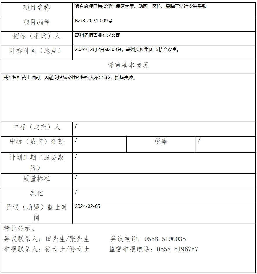 逸合府項(xiàng)目售樓部沙盤區(qū)大屏、動(dòng)畫、區(qū)位、品牌工法館安裝采購(gòu)中標(biāo)(成交)結(jié)果公示