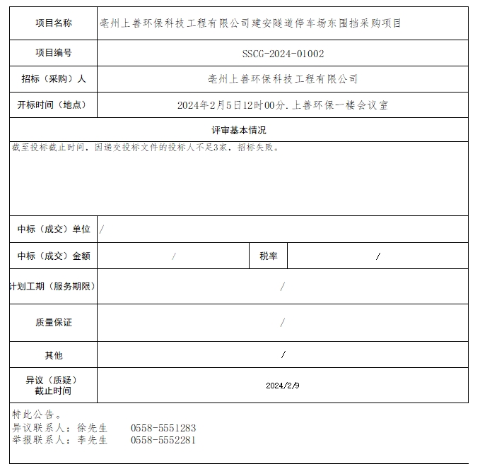 亳州上善環(huán)??萍脊こ逃邢薰窘ò菜淼劳\噲鰱|圍擋采購項目中標(biāo)結(jié)果公示