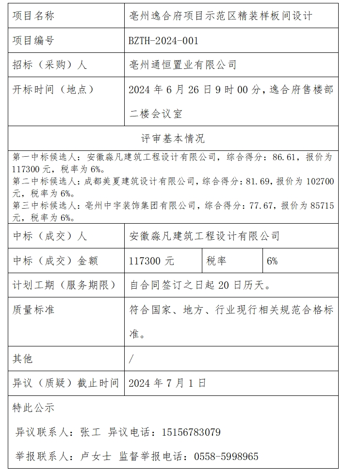 亳州逸合府項目示范區(qū)精裝樣板間設(shè)計中標(biāo)結(jié)果公示