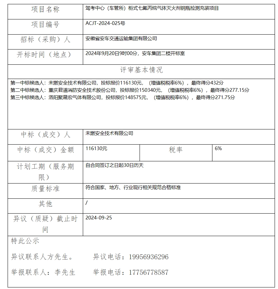 駕考中心(車(chē)管所)柜式七氟丙烷氣體滅火劑鋼瓶檢測(cè)充裝項(xiàng)目中標(biāo)(成交)結(jié)果公示