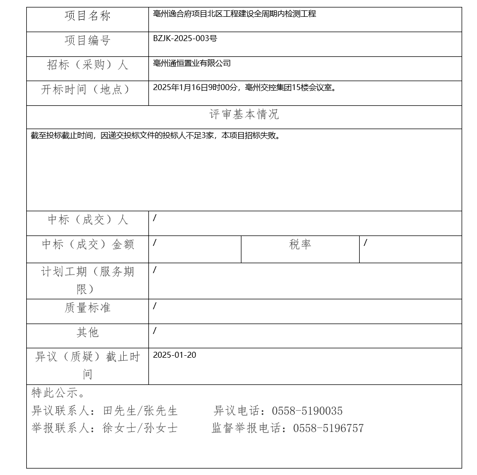 亳州逸合府項目北區(qū)工程建設(shè)全周期內(nèi)檢測工程中標(成交)結(jié)果公示
