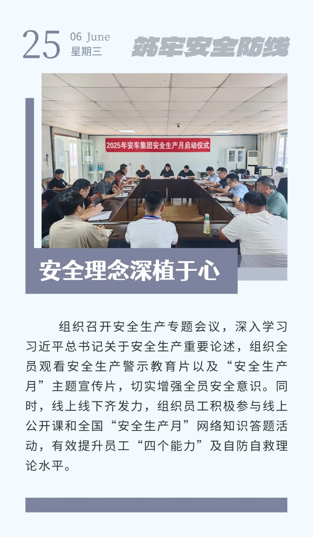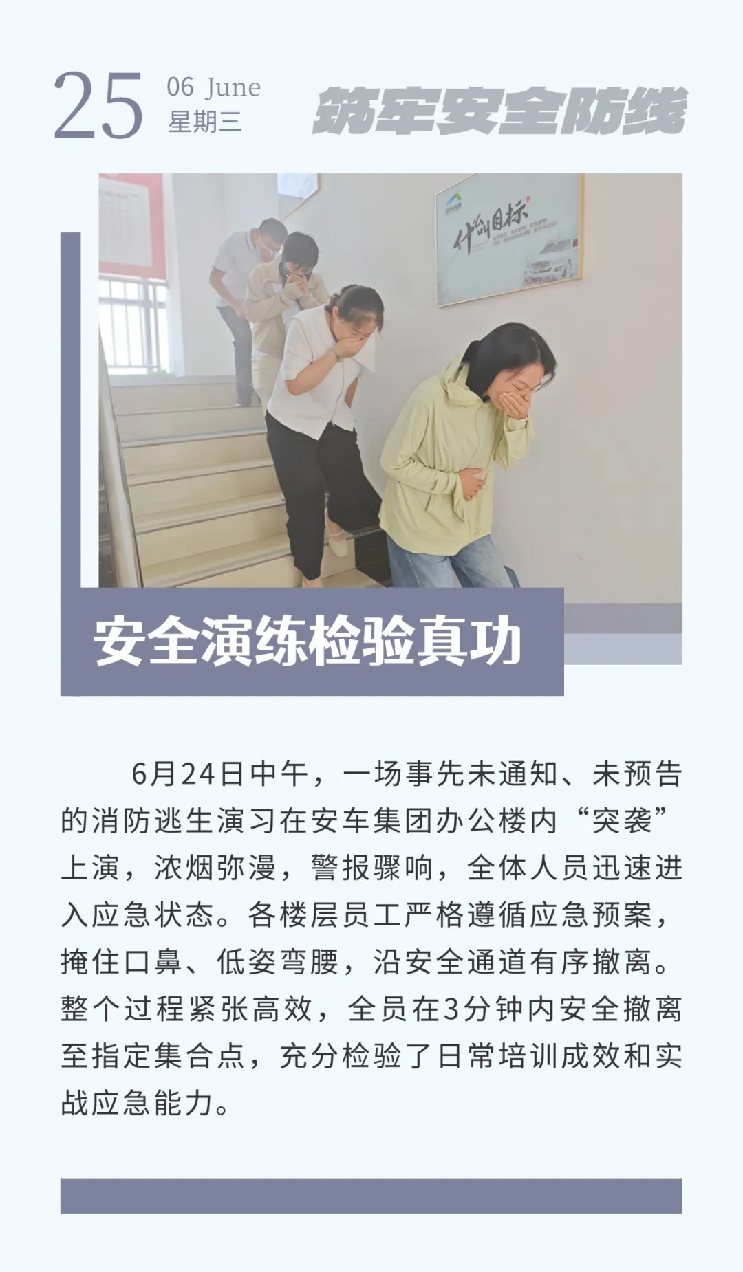 為深入貫徹“人人講安全、個(gè)個(gè)會應(yīng)急”安全理念,6月以來,安車集團(tuán)系統(tǒng)部署、多措并舉,扎實(shí)開展“安全生產(chǎn)月”系列活動。通過宣教結(jié)合、實(shí)戰(zhàn)演練、隱患整治等舉措,全面提升全員安全素養(yǎng)和應(yīng)急處置能力,為公司安全運(yùn)行筑牢防線。