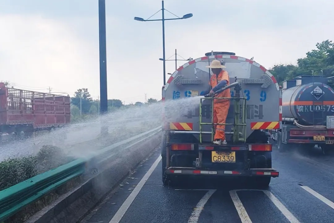 對易發(fā)生車轍、擁包、裂縫等病害的路段實施重點監(jiān)控,動態(tài)調(diào)整灑水作業(yè)路線與頻次,有效降低路面溫度、預(yù)防爆胎風(fēng)險。同時,合理調(diào)整養(yǎng)護作業(yè)時間,采取“早開工、晚收工、午間休”錯峰作業(yè)模式,為養(yǎng)護人員配備專業(yè)透氣防曬服等防護裝備,并在每次作業(yè)前嚴(yán)格執(zhí)行安全交底流程,確保高溫作業(yè)安全“零事故”。