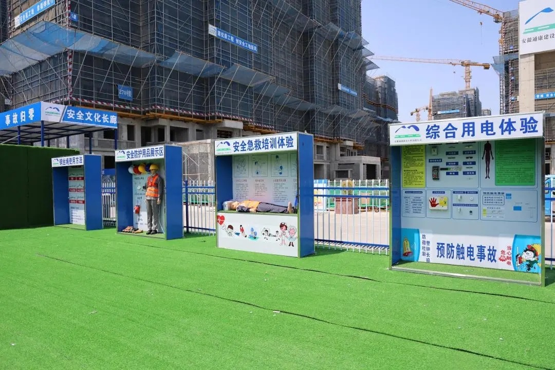 自項(xiàng)目建設(shè)以來(lái),通康公司始終秉持“生命至上,安全第一”的建設(shè)理念,將安全生產(chǎn)標(biāo)準(zhǔn)化建設(shè)作為核心工作之一。在施工現(xiàn)場(chǎng),設(shè)立安全文化宣傳長(zhǎng)廊、安全文化展覽設(shè)施及安全體驗(yàn)館等區(qū)域,全面實(shí)施工場(chǎng)地周邊100%圍擋、物料堆放100%覆蓋、土方開(kāi)挖100%濕法作業(yè),施工路面100%硬化、出入車(chē)輛100%沖洗,渣土車(chē)輛100%密閉運(yùn)輸;此外,建立以項(xiàng)目經(jīng)理為核心的全員化安全管理責(zé)任網(wǎng)格機(jī)制,推行安全隱患“隨手拍-即時(shí)改-當(dāng)日清”的閉環(huán)管理流程,全方位筑牢安全防線。