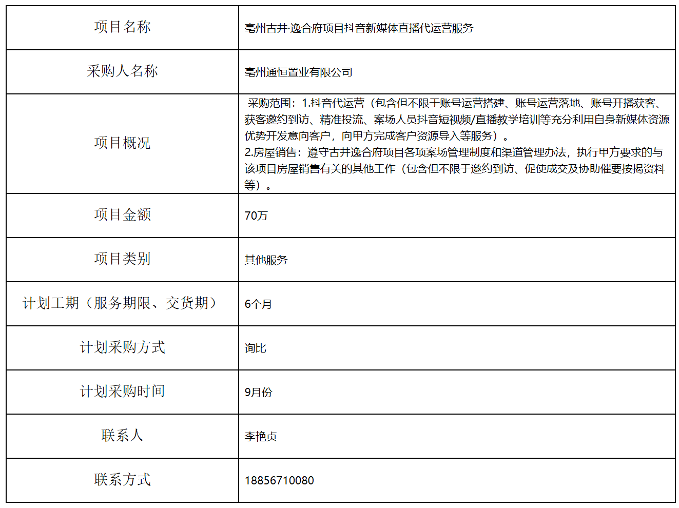 亳州古井·逸合府項(xiàng)目抖音新媒體直播代運(yùn)營(yíng)服務(wù)招標(biāo)計(jì)劃