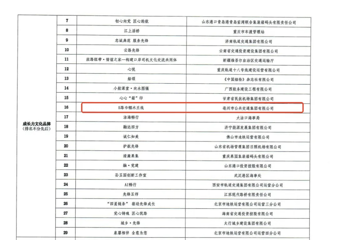 近日,“交通強(qiáng)國 品牌力量”第七屆交通運(yùn)輸優(yōu)秀文化品牌推選活動結(jié)果公布,亳州公交“5路巾幗木蘭線”榮獲“成長力文化品牌”。
