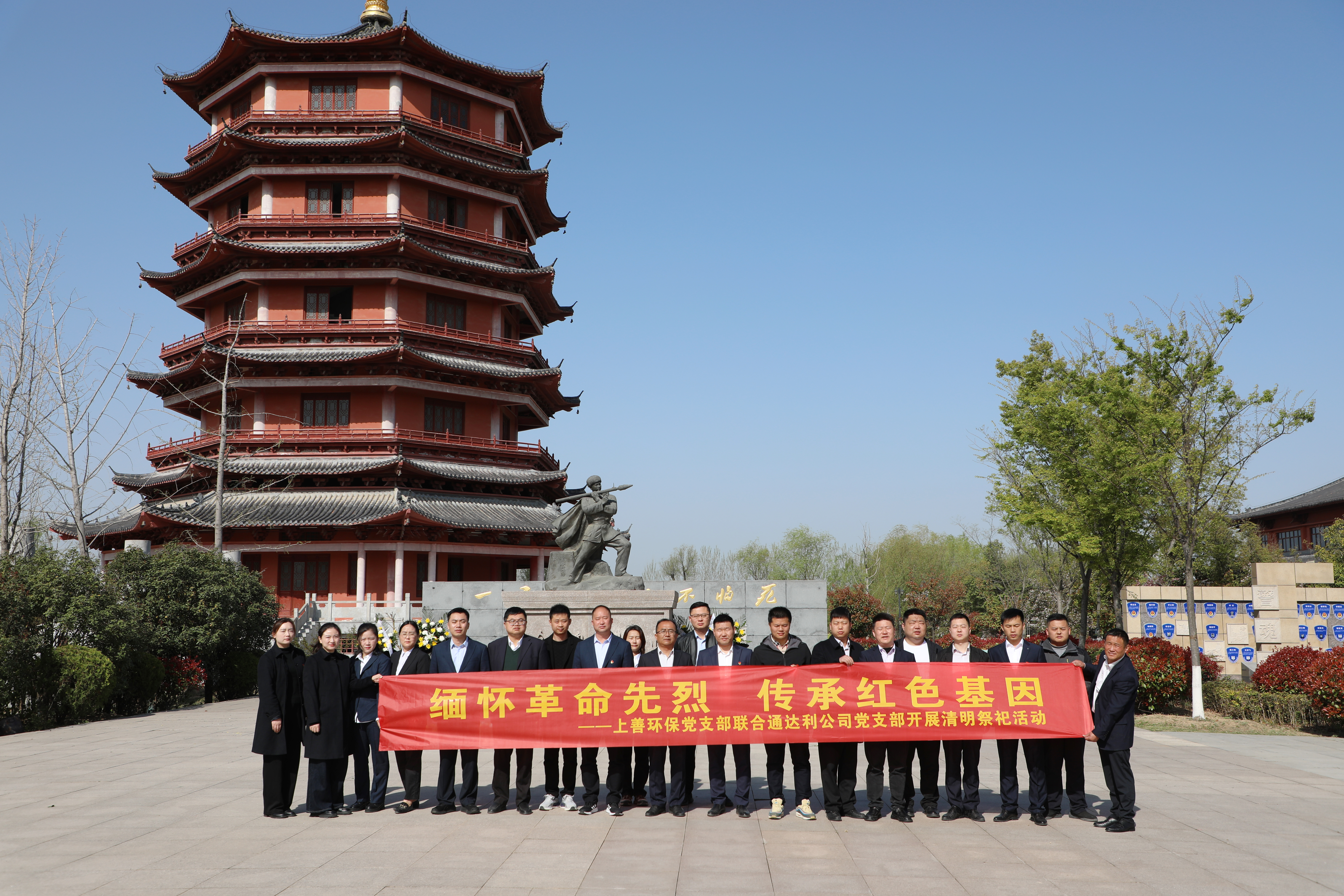 為緬懷革命先烈,傳承紅色基因,4月2日上午,上善環(huán)保黨支部與通達(dá)利公司黨支部全體黨員共同前往福壽陵園,開(kāi)展了一場(chǎng)莊重而深刻的祭掃活動(dòng)。 活動(dòng)現(xiàn)場(chǎng),黨員們懷著崇敬的心情向革命先烈敬獻(xiàn)花籃,鞠躬默哀,表達(dá)對(duì)先烈的無(wú)限敬仰和深切緬懷。面向黨旗,...